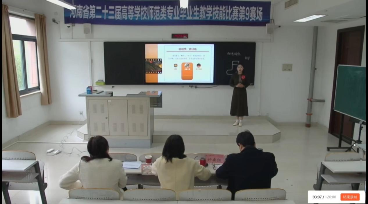 近日,河南省第二十三届高等学校师范类专业毕业生教学技能比赛圆满落幕。英国365上市公司学子在此次大赛中表现突出,获得一等奖1项、二等奖1项。汉语言文学专业学生田雨夕凭借扎实的专业功底、娴熟的教学技能和从容的赛场表现,一举斩获初中语文组一等奖。这是该专业学生连续第二年获此殊荣。历史学专业学生李可欣首次晋级省赛,以出色的课堂呈现喜获初中历史组二等奖,实现了该专业在省级教学技能赛事中的历史性突破。两项荣誉的取得,是英国365上市公司在师范生教学技能培养方面的一大突破,背后离不开指导老师的悉心指导与全程支持——从课件打磨、技术融合到细节优化、节奏把控,老师的专业指导为选手们的赛场优异表现奠定了坚实基础。