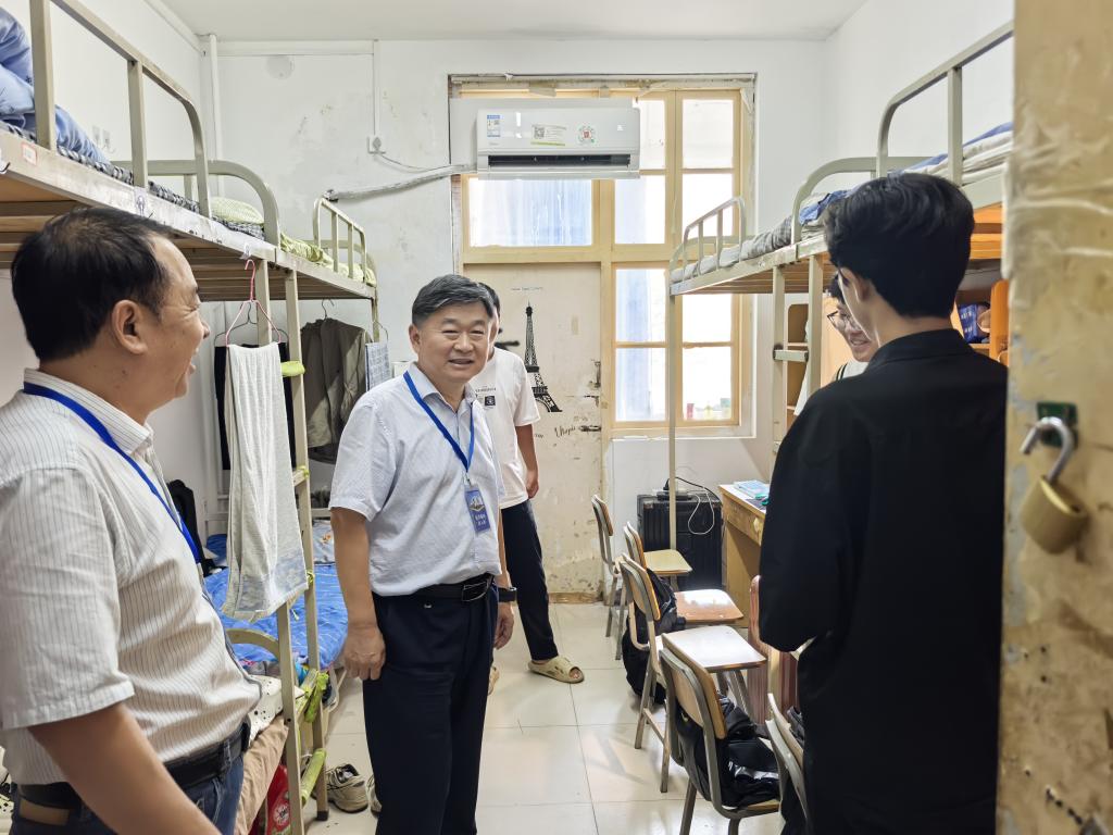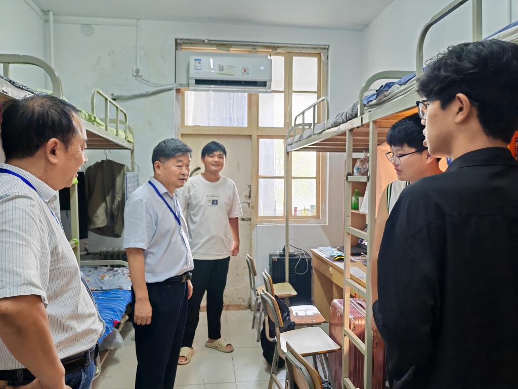 9月13日下午,校党委书记王孝俊在我院领导班子的陪同下走进东生活区,看望刚刚入住的2025级新生,实地了解新生报到、学生管理、环境卫生等情况。